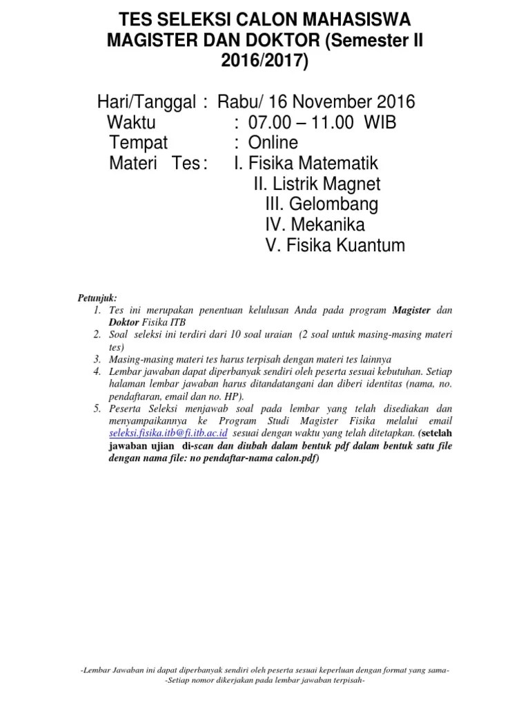 Soal Ujian Pascasarjana / Contoh Soal Ujian Masuk Magister Manajemen Berbagi Contoh Soal : Materi soal tes tpa oleh oto bappenas terdiri dari 3 subtes: